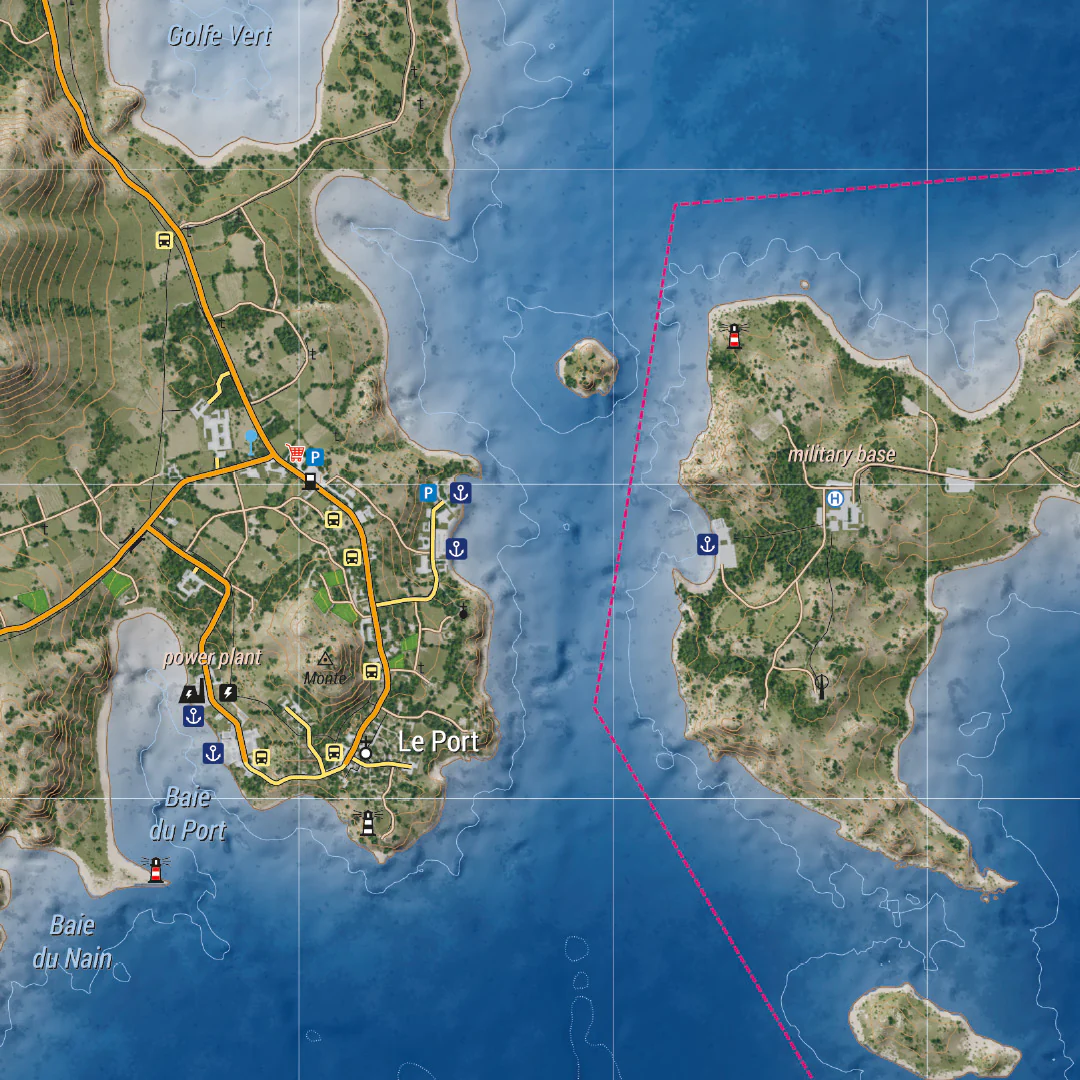 ❖ Detailed topographic map of Malden as seen in Arma 3
